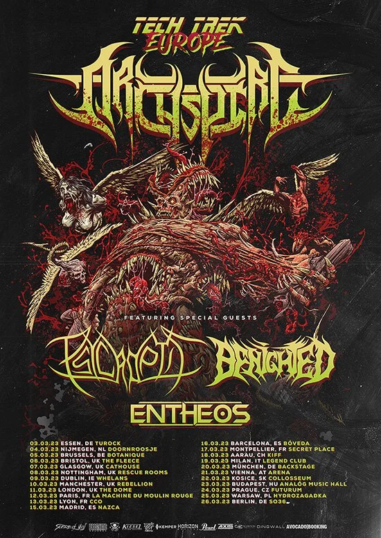 Canadian Tech Death outfit ARCHSPIRE are now announcing new European tour dates together with BENIGHTED, PSYCROPTIC and ENTHEOS in March 2023! The ‘European Tech Trek’ will be blasting through 15 countries at 350 bpm and a full list of confirmed shows can be viewed below. Tickets will be on sale on Monday December 05.