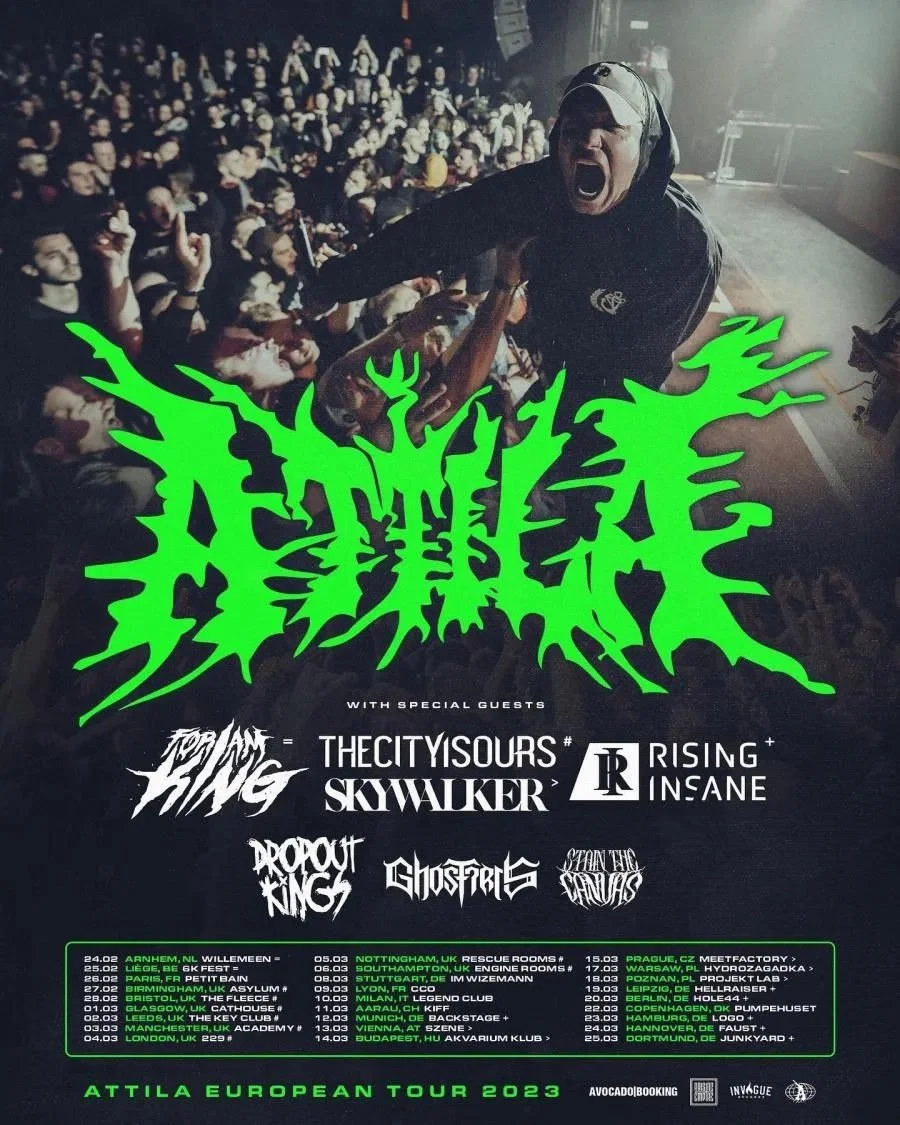The lineup for Attila‘s imminent European/UK headlining tour has been met with some changes. Our Hollow, Our Home‘s departure came about as the result of a mass exodus of members from their lineup. It is unclear why Traitors pulled out of the trek. In light of their exits from the bill, the trek will now feature support spots from For I Am King, Thecityisours, Skywalker and Rising Insane on select dates.