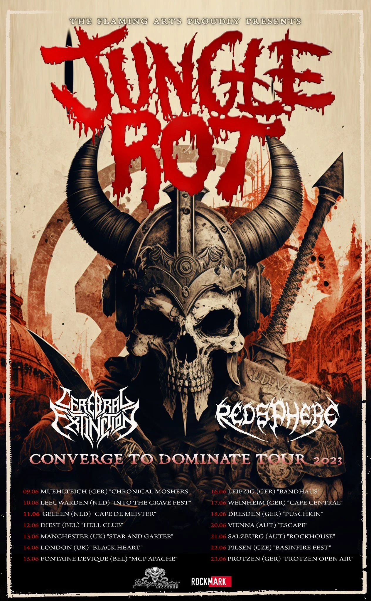 Cerebral Extinction (Italy, technical/brutal death metal) and REDSPHERE (death metal, New Caledonia) are joining Jungle Rot as supporting acts.