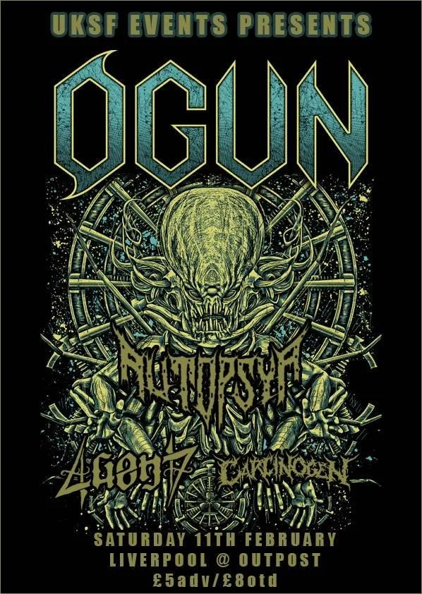 Ogun @ The Outpost, Liverpool Saturday 11 February 2023 7:00 pm 11:00 pm 19:00 23:00 The Outpost 77 Renshaw St Liverpool, L1 2SJ United Kingdom (map) Google Calendar ICS TICKETS : £6.00 UKSF Presents:Ogun - Scouse thrash titansAutopsya - Beer chugging Portuguese Thrash4GEN7 - Manchester rockersCarcinogen - Local newcomers show no mersey!£5adv/£8otdMusic Genres: Metal, Rock