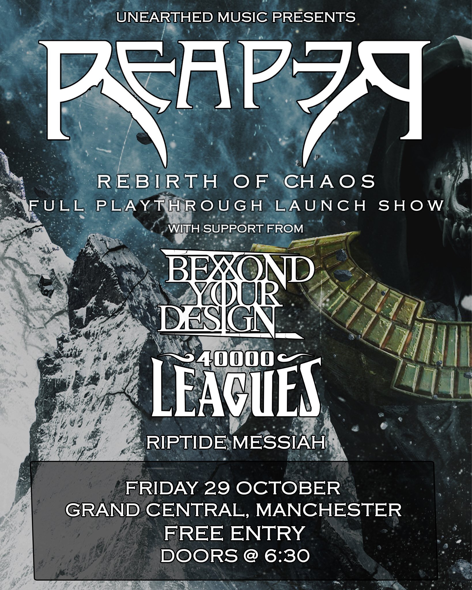 Our #album #playthrough show at Grand Central Oxford Road for Rebirth of Chaos has had new additions!! EXTREMELY excited to say we are FINALLY playing alongside the spectacular 40,000 Leagues! These guys have been on our radar for ages and we're super glad to have a show with them at last