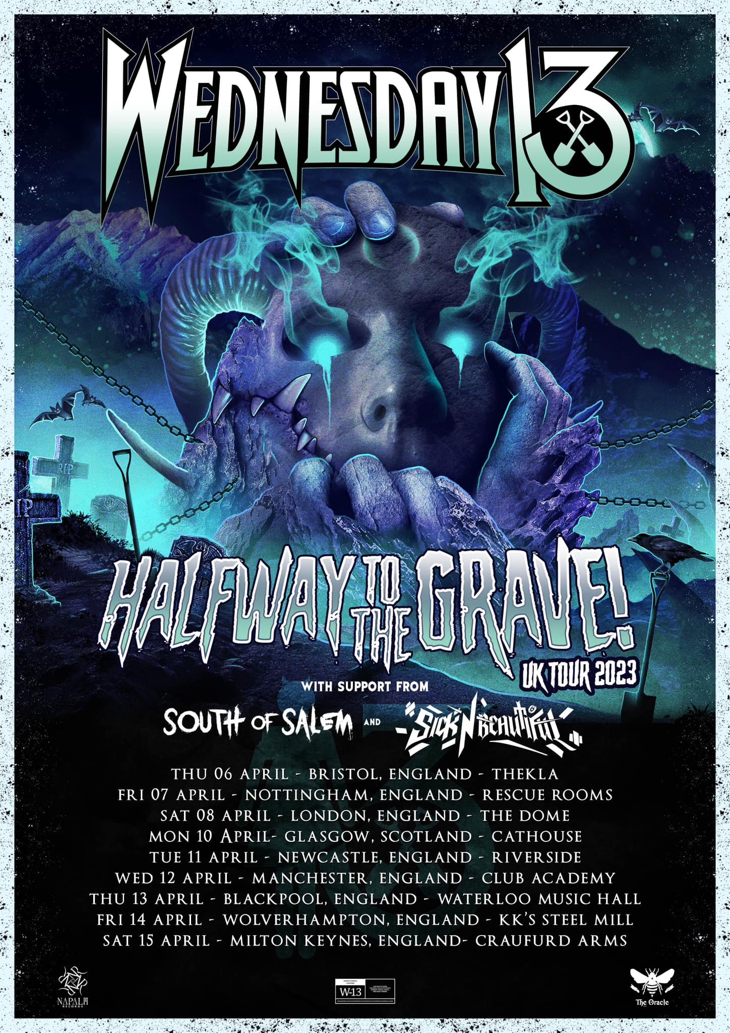 The Duke of Spook, Wednesday 13, has announced his Halfway To The Grave! 2023 UK tour, which is set to kick off on April 6 at Bristol Thekla, with full dates detailed below. Tickets are on sale now and available here.